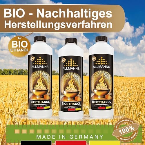 Allmanns Bioethanol 1l 100% | Bio Ethanol 100 Prozent | Reiner Bioalkohol geeignet für Indoor & Outdoor | ideal für Tischkamin Tischfeuer Kaminofen Feuerstelle Feuersäule