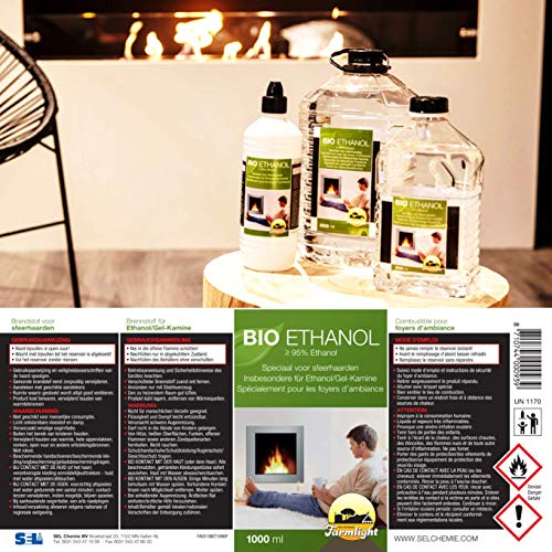 Farmlight Bioethanol 1 Liter, Ultra geruchlos, Öko-Kraftstoff 100% pflanzlichen Ursprungs, kompatibel mit allen elektrischen oder mechanischen Öfen
