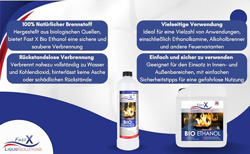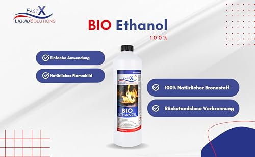 Fast X Bio Ethanol 1L – 100% Natürlich, für Ethanolkamine & Alkoholbrenner. Umweltfreundlich & geruchsfrei, sicher für Raum- & Gartenfeuer mit rückstandsloser Verbrennung