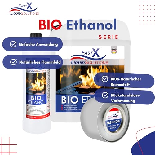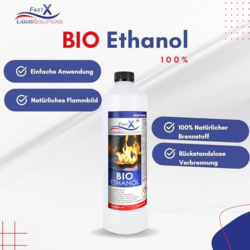 Fast X Bio Ethanol 6x1L – 100% Natürlich, für Ethanolkamine & Alkoholbrenner. Umweltfreundlich & geruchsfrei, sicher für Raum- & Gartenfeuer mit rückstandsloser Verbrennung