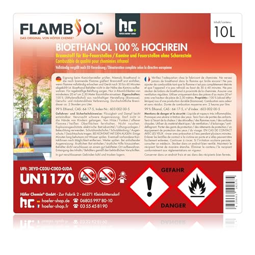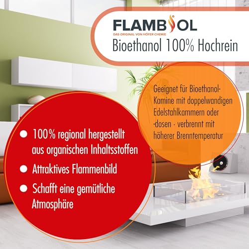 Höfer Chemie 60 L FLAMBIOL® Bioethanol (6 x 10 L) für Ethanol Kamin, Ethanol Feuerstelle, Tischfeuer und Bioethanol Kamin