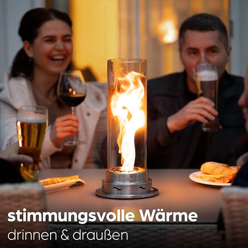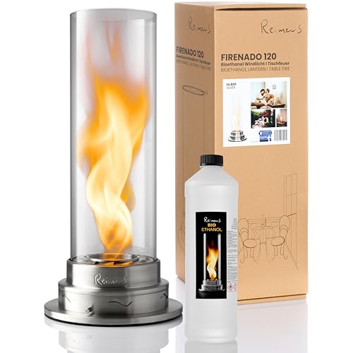 ReimerS Firenado 120 – Premium Tischkamin aus Edelstahl & Glas – Elegante VortexFlame™ Flammenregulierung für Innen & Außen