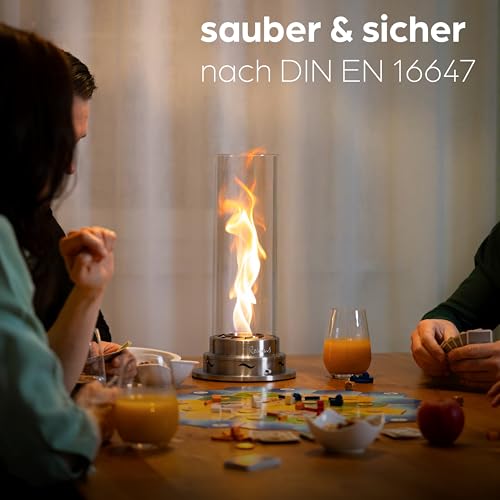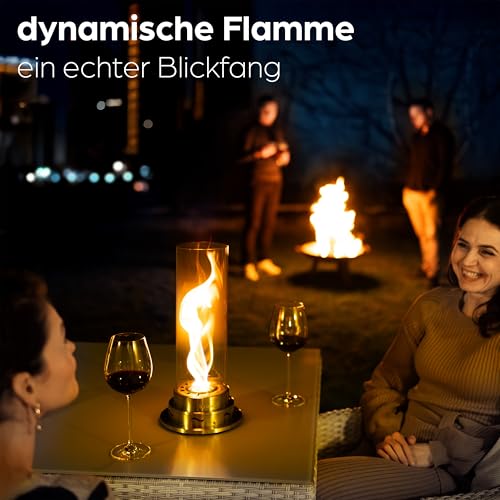 VORTEXFLAME – DIE MAGISCHE WIRBELFLAMME – Durch präzise designte Luftauslässe entsteht eine Luftzirkulation im Glaszylinder. Das Ergebnis? Eine elegant tanzende Flamme, die sich sanft wie ein Tornado dreht – ein hypnotisierendes Schauspiel, das begeistert.