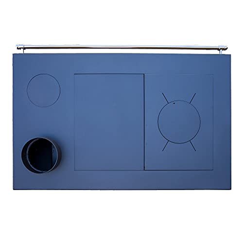 Durch den Griff oberhalb des Backfaches können Sie die Temperatur im Backfach beliebig regulieren. Zur Kontrolle der Temperatur im Backofen ist ein Thermometer an der Scheibe angebracht. Die Kochplatte aus Gusseisen kann herausgenommen werden um direkt über der Flamme zu braten oder zu kochen, z.B. mit einem Wok. Kochen und Backen Sie ohne die Verwendung von Strom oder Gas.