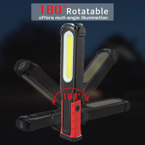 Vielseitig & Leistungsstark: Unsere wiederaufladbare led arbeitslampe dient als taschenlampe, notlicht und werkstattleuchte, perfekt für mechaniker, baustellen, werkstätten, garagen und KFZ-Reparaturen, Sein Rotlichtmodus ist sehr geeignet für Urlaub, wenn es Probleme auf der Straße gibt, um Fahrer zu warnen