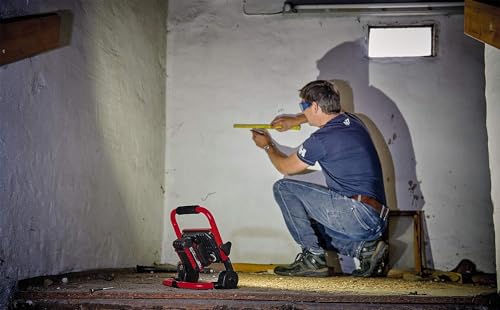 Die Einhell Akku-Lampe TC-CL 18/1800 Li bringt Licht ins Dunkel: Angetrieben von einem 18 Volt Power X-Change-Akku, wird eine optimale Beleuchtung durch leistungsstarke LEDs gewährleistet