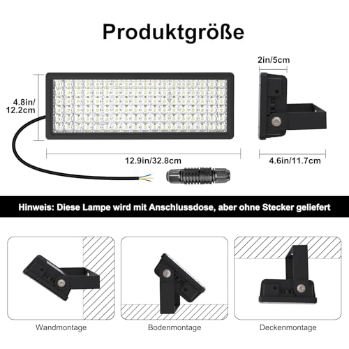 Flexible Installation: Outdoor scheinwerfer wird mit einem 60 cm langen Netzkabel und einer um 180° verstellbaren Halterung geliefert und unterstützt verschiedene Installationsmethoden. Egal, ob an der Decke, an der Wand oder auf dem Boden – sie passt sich flexibel an. Zudem bieten wir eine Anschlussdose an, die eine einfache Kabelverlängerung und Installation ermöglicht (kein Stecker, kein Sensor, keine Fernbedienung)