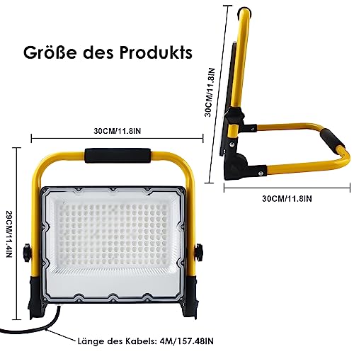 OUSIDE 150W LED Baustrahler mit Stativ und 4m Kabel,IP66 Wasserdichter Arbeitsscheinwerfer mit Schuko-Stecker für Werkstatt,Wartung oder Baustelle, 6500K Kaltes Weißes Licht,15000 Lumen