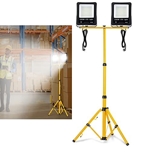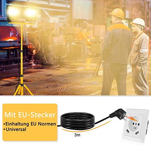 YRHome LED Fluter Baustrahler Flutlicht 2x 100W Kaltweiß Warmweiß Wasserdicht IP66 Arbeitsscheinwerfer Scheinwerfer mit Stativ und 3M Kabel Außenbereich Garten Garage
