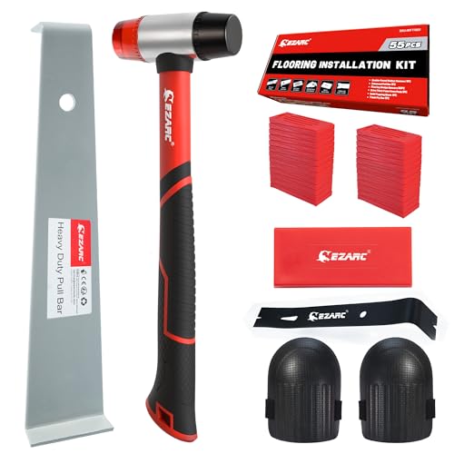 EZARC Vinyl Verlegeset Bodenverlegewerkzeuge, Werkzeugset für Laminatböden, mit doppelseitigem Holzhammer, schwerer Zugstange, Anschlagblock, Abziehstange und 50 Abstandshaltern für den Boden.