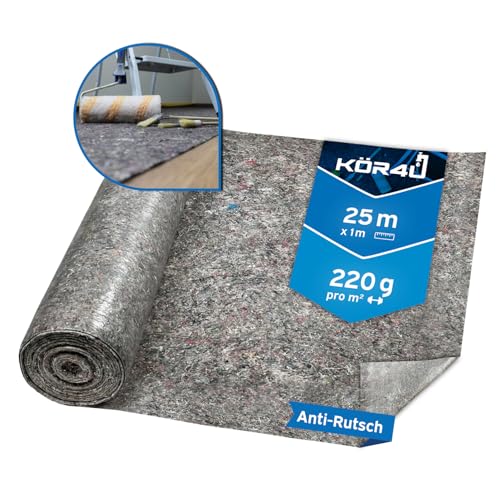 kör4u Malervlies 25m, 220g Abdeckvlies – Staubdichtes, Rutschfestes Malervlies für Renovierungen, Umzüge und Heimwerkerprojekte