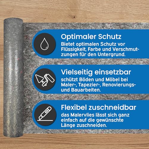 MALERVLIES: Das Malervlies ist der optimale Schutz für Böden während verschiedenster Renovierungs- und Malerarbeiten. Schützen Sie Ihre Böden beim Renovieren oder Streichen vor Farbspritzern und Schmutz.
