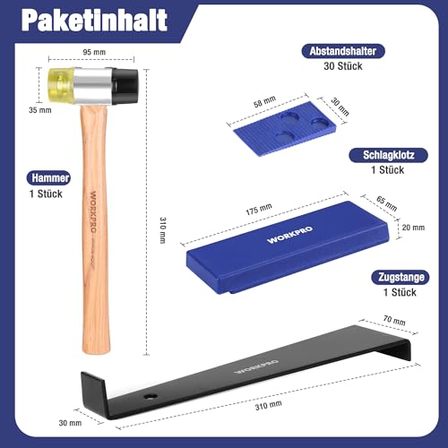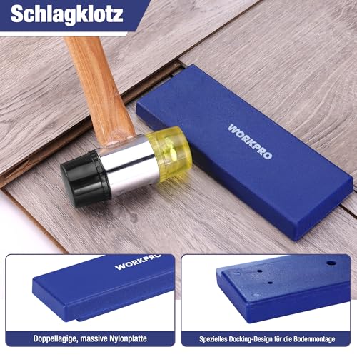 WORKPRO Laminat Verlegeset, Werkzeug zum Verlegen von Laminat mit 30 Abstandshalter, doppelseitigem Hammer, Zugeisen, Schlagklotz, Bausatz für den Bodeneinbau