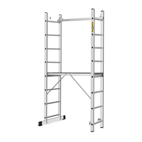 Be the first to review “DRABEST – Leitergerüst – 3in1 Mehrzweckleiter – Trittleiter, Schiebeleiter, Baugerüst – Aluminium – 2,14 m lang – Arbeitshöhe 2,97 m – 2 x 8 Sprossen – 46x214x14 cm Arbeitsplattform – bis 150 kg”