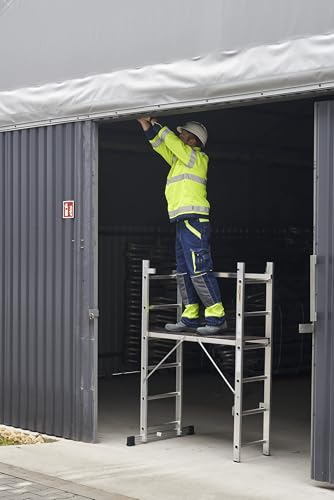 Robuste Materialien: Das Leitergerüst ist eine langlebige und robuste Konstruktion aus hochwertigem Aluminium, die auch jahrelangen Witterungseinflüssen standhält.