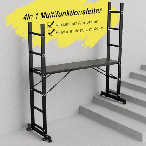 🛠️ 【Praktisch】Unser Multigerüst ist nicht nur ausziehbar und höhenverstellbar, sondern kann auch zusammengelegt und platzsparend gelagert werden. Das Arbeitsgerüst ist das perfekte Heimwerker-Gerüst. Diese universale Aluminium Vielweckleiter ist ideal für Arbeiten rund um Haus, Garten oder Werkstatt.