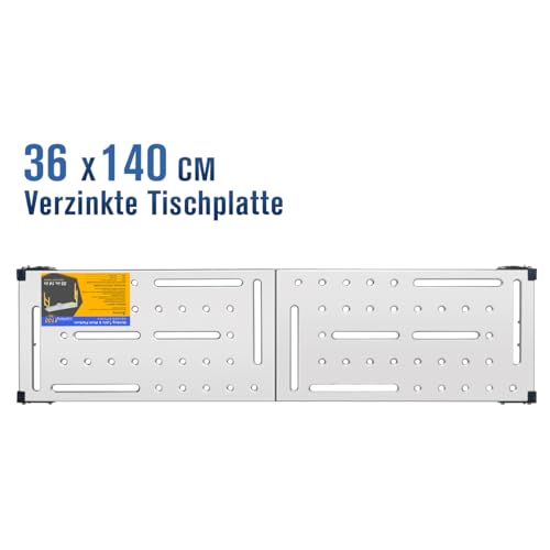 𝐕𝐈𝐄𝐋𝐒𝐄𝐈𝐓𝐈𝐆𝐄𝐑 𝐍𝐔𝐓𝐙𝐄𝐍: Der verstellbare Schweißtisch verfügt über eine großzügige 36×140 cm große verzinkte Tischplatte, die strategisch mit sowohl Postlöchern als auch Schlitzen ausgestattet ist und somit perfekt auf Ihre vielfältigen Schweißanforderungen zugeschnitten ist.