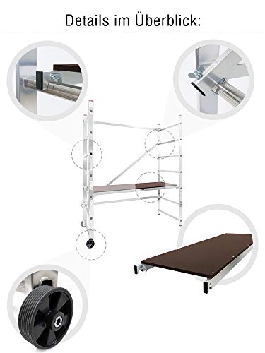 STRUKTURO fahrbares Arbeitsgerüst – Arbeitshöhe 3,00 m – Kleingerüst – Arbeitsgerüst mit Treppenverstellung, aus Aluminium, für innen und außen