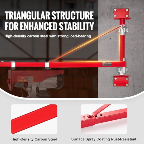 VEVOR Elektrischer Hebezeug-Stützarm 600 kg Tragkraft Hebezeughalter-Schwenkarm mit Stange Hebezeugrahmen aus Stahl, 180° schwenkbarer Gerüsthebezeug-Hebearm Windenhebezeugarm für Werkstatt Garage