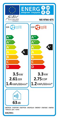 Energieeffizienzklasse A (EER 2,61), 12.000 BTU/h • Komfort-Extras: direkte Temperaturwahl, Ein- und Ausschalt-Timer, Ventilator-Funktion mit 3 Geschwindigkeiten • Raumluft-Entfeuchtung: bis zu 36 l/Tag • Kühlmittel und -menge: R290, 245 g • Kompatibel mit Amazon Alexa und Google Assistant: Klimaanlage per Echo, Echo Dot, Google Home und kompatiblen Lautsprechern per Sprachbefehl steuern • Mobil durch Haltegriffe und Rollen