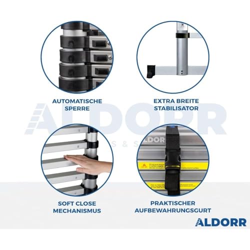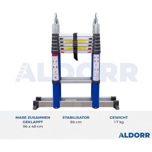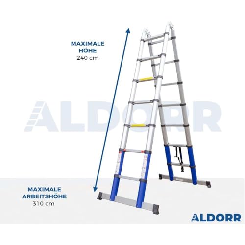 ALDORR 4,40M Teleskop-Klappleiter aus Hochwertigem Aluminium – Teleskopleiter – Belastbarkeit bis zu 150kg – Leiter Ausziehbar – Sicher und zuverlässig (EN131)