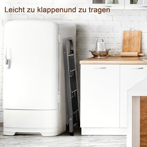 AMHANCIBLE Trittleiter, Leiter mit 3 Stufen, bis 150 kg belastbar, Klapptritt mit breitem Anti-Rutsch-Pedal und Klappsicherung, Einfach zu Verstauen, Perfekt für Küche & Haushalt, Taubengrau EBSL03GY