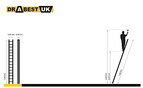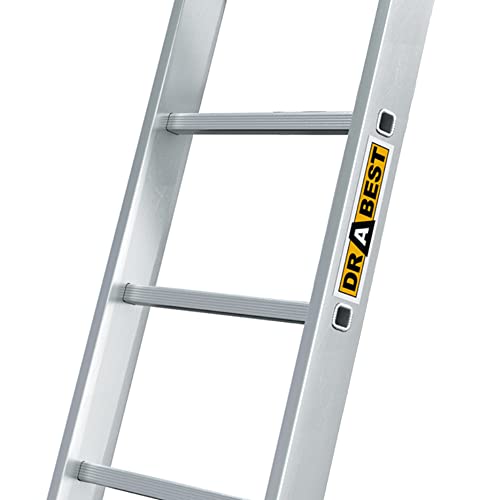 DRABEST PRO Serie Anlegeleiter Aluminium-Stufenleiter – 6 Stufen – mit Leiterhaken – Tragfähigkeit 150 kg – Anti-Rutsch-Füße, Leichtes Gewicht, korrosionsbeständig – EN131