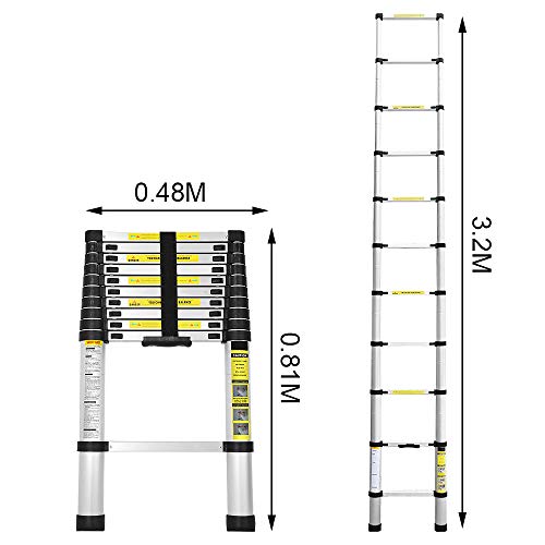 EINFEBEN Teleskopleiter, 3.2M Aluminium Leiter, Tragbar Ausziehleiter, Teleskop Aluminiumleiter, Mehrzweckleiter, Maximale Tragkraft von 150kg