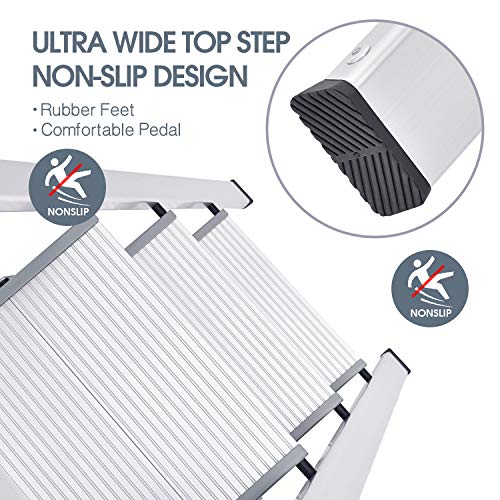 【Sicher und stabil】Die Leiter hat ein rutschfestes Design auf den Stufen und ist mit Handläufen und 4 Anti-Rutsch-Füßen ausgestattet, die die Stabilität und Sicherheit der Leiter verbessern und gleichzeitig den Boden vor Kratzern schützen. Es ist zuverlässiger zu verwenden, ohne sich Sorgen über Unfälle.