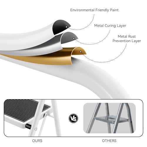 【Platzsparende Klapptritt Leiter】 Dieser faltbare 4-stufige Hocker kann leicht auf nur 6,8 cm D zusammengeklappt und an einer Wand oder Ecke, in Ihrem Schrank oder unter Ihrem Bett verstaut werden, ohne viel Platz zu beanspruchen. Diese leichte Stahlleiter wiegt nur 6,2 kg, daher leicht mit einer Hand transportiert.