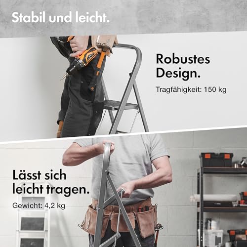 ZUVERLÄSSIG: Die robuste Mehrzweckleiter aus langlebigem Stahl trägt bis zu 150 kg Gewicht, so dass Sie Ihre Heimwerkerarbeiten im Haushalt sicher erledigen können.