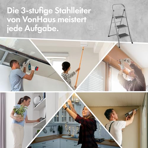 UNSER MARKENVERSPRECHEN: VonHaus ist seit 2009 Ihre helfende Hand bei der Verwirklichung Ihres Wohntraumes. Unsere Haushaltsleiter mit 3 Stufen hilft Ihnen, Ihr nächstes Projekt in die Tat umzusetzen.