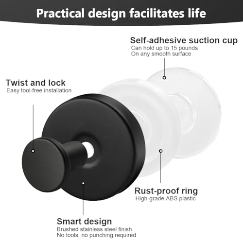 【HOCHWERTIGES MATERIAL】: Der Saugnapf-Duschhaken besteht aus hochwertigem Edelstahl, und die Saugnapfbasis besteht aus hochwertigem PVC-Kunststoff mit einer klebrigen Weichgummischicht, die langlebig, rostfrei und leicht zu reinigen ist Es kann in Badezimmern und Küchen verwendet werden.
