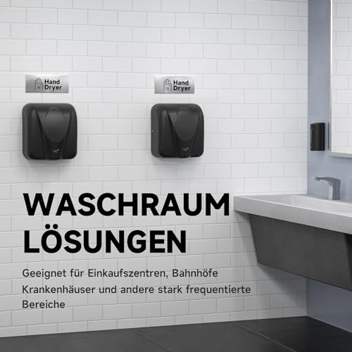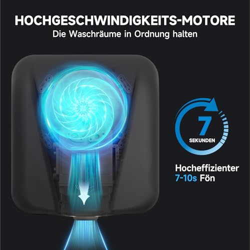 [7 S Fast Drying]Unser Händetrockner verwendet eine innovative, hochpräzise und fortschrittliche Luftstromtechnologie, die Feuchtigkeit in 7-10 Sekunden trocknet. So bleibt der Verkehr in den Waschräumen in Bewegung, ideal für Büros, Einzelhandel, Restaurants, Bildungs-, Unterhaltungs- und Gesundheitseinrichtungen.