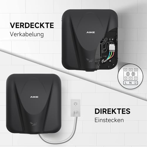 AIKE AK2812 Händetrockner Elektrisch, High-Speed 7 S Trockenzeit, elektrische Trockner geeignet für große Einkaufszentren