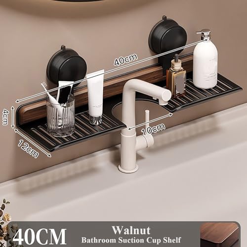 GXJIXf Walnut Bathroom Suction Cup Shelf, no Drill Faucet Organizer Rack, Suction Cup Installation, Stable Load-Bearing, for Bathroom and Kitchen (Black,40CM)