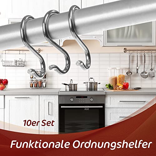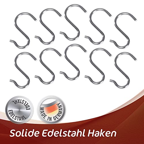 4smile S-Haken Edelstahl – 10er Set – Rostfreie Haken zum Einhängen, Küchenhaken für drinnen und draußen – Funktionale Aufhängehaken, Metallhaken zum Einhängen