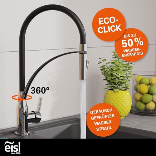 EISL NI183CARCRB CARNEO Wasserhahn Küche mit ausziehbarer Brause, Wasserhahn Küche flexibel, schwenkbare Küchenarmatur, Spültischarmatur, Chrom Schwarz