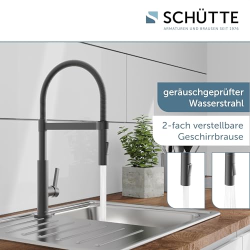 SCHÜTTE 79142 MIAMI Küchenarmatur 360°, Einhebelmischer mit ausziehbarer, magnetischer Geschirrbrause, Spültischarmatur Mischbatterie für die Spüle, Wasserhahn Küche Graphit