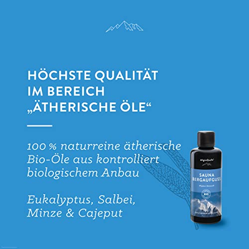 AllgäuQuelle® Saunaaufguss mit 100% BIO-Öle Atemwohl Eukalyptus Minze Salbei Cajeput (100ml). Natürlicher Sauna-aufguss m. ätherische Sauna-Öle im Aufguss-Mittel. Saunaöl naturrein Bio-Saunaduft