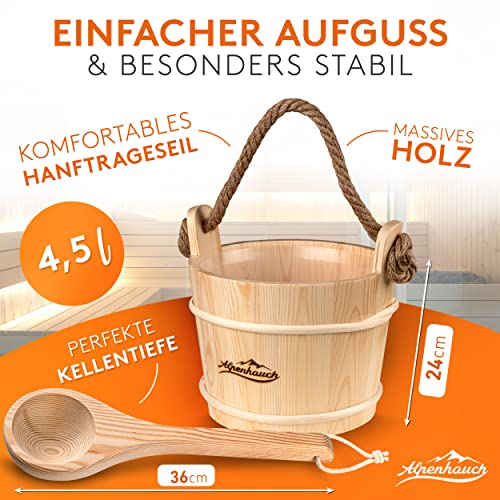 ![ALPENHAUCH Sauna Eimer mit Kelle [100% Naturholz] - Edles Saunakübel Set mit Sauna Sanduhr & Thermometer/Hygrometer - Langlebiges Sauna Zubehör - Aufgusseimer Set inkl. praktischem Sauna Büchlein – Bild 3](https://m.media-amazon.com/images/I/51S4UnyjTDL.jpg)