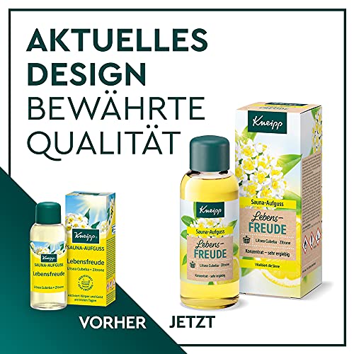 Kneipp Sauna Aufguss Lebensfreude, natürliche ätherische Öle der Litsea Cubeba & der Zitrone aktivieren Körper & Geist, vitalisiert die Sinne – ergiebiges Konzentrat für die Sauna, 100 ml (1er Pack)