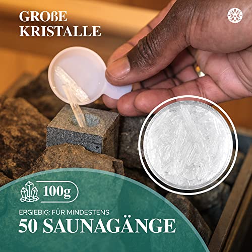 EINFACHE ANWENDUNG – Die Kristalle aus Minze eignen sich ideal für das Sauna Aufguss Erlebnis. Je nach Größe der Kabine und der Kristalle idealerweise 1-3 Stück für einen Saunagang verwenden.