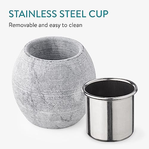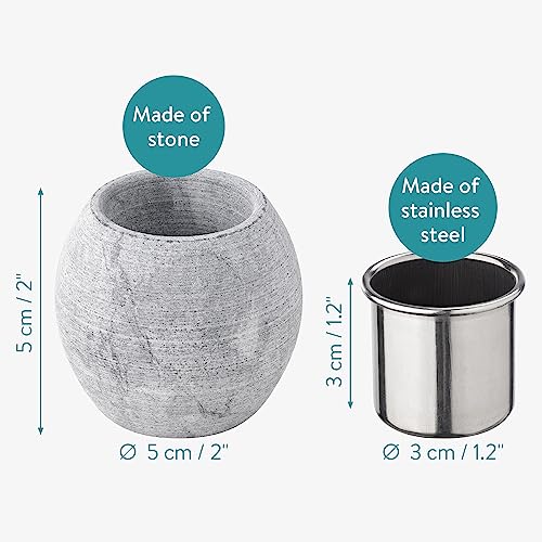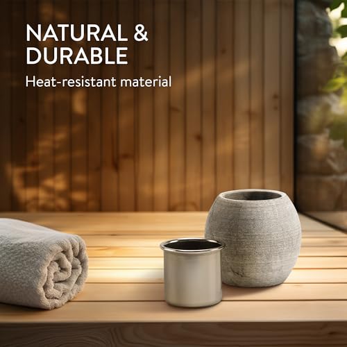 Hochwertig: Der Sauna Becher ist hergestellt aus natürlichen und strapazierfähigen Materialien. Die Steinschale ist aus Speckstein und der innere Behälter aus hitzebeständigem Edelstahl gefertigt.