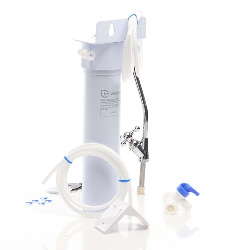 Naturewater NW-1-GAC 1 Stufen Untertisch Wasserfilter, 5 µ, Aktivkohle Granulat Filtereinsatz, Kartusche Filter, mit Schnellanschluss, Wasserhahn