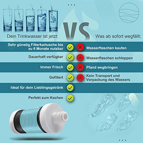 Auch lustig oder riecht schlecht mit einer einfachen installation des up! wasserwasserfilters. Sie können sofort den reinen wassergeschmack genießen, und dank der innovativen kokosnussschalen reinigt diese leistungsstarke filtertechnologie ihr leitungswasser sogar nachhaltig. Was kostet sie im supermarkt mineralwasser im durchschnitt, 2 liter pro tag kosten sie 60 euro pro monat, die viltaro -filter -patrone kann bis zu 6 monate verwendet werden . Holen sie sich ihre eigene space saving , weil sie nie müssen tragen sie die kilo heavy boxes vom supermarkt in ihr haus oder nehmen sie diese nervigen einzahlungsflaschen weg. Holen sie sich stattdessen einfach frisches trinkwasser direkt aus ihrem wasserhahn, mit dem sie auch ihr gemüse waschen oder ihre pflanzen gießen. Hausgemachte getränke, sei es kaffee, tee oder eine erfrischende limonade. Mit gefiltertem leitungswasser können sie sich noch besser vorbereiten. Tipp: auch ideal für köstliche smoothies. Dank der geschmacksverbesserung ihres leitungswassers möchten wir unsere mission für sie und ihre familie erfüllen, jeden tag mehr wasser zu trinken. Wir möchten ihren wunsch nach reinem wasser ohne zucker wecken, ohne künstlichen geschmack oder zusätzliche zusatzstoffe! water water filter patrone filterpatrone für den wasserfilter tap wasserfiltersystem mit aktiviertem kohlenstofffilter aus nachhaltigem kokosblock.