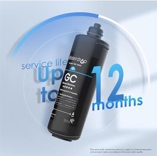 Waterdrop WD-10GC Untertisch-Wasserfilter, Ersatz für Waterdrop TSA & TSB 3-stufigen Untertisch-Wasserreiniger für den Heimgebrauch [Kompatibles Modell: Kompatibel mit Waterdrop 3-stufigem Untertisch-Trinkwasserfilter (WD-TSA/WD-TSB). Kein Werkzeug erforderlich. Verbesserte Filterung: Dieser GC-Filter verwendet natürliche Aktivkohle aus Kokosnussschalen und reduziert effektiv Chlor, Blei, Geschmack und Geruch sowie andere schädliche Schwermetalle und verbessert so den Geschmack des Wassers. [1] [Keine Risse und keine Lecks]: Der Untertisch-Wasserfilter besteht aus langlebigen Materialien, die nicht leicht brechen oder auslaufen. Das integrierte Design verhindert die Bildung schädlicher Schadstoffe, sodass die Bodenkappe nicht ausgetauscht werden muss.