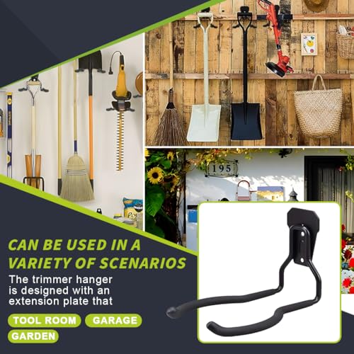 【Werkzeug Aufhänger】Unser Garten Werkzeug Aufhänger besteht aus hochwertigem Stahl, schwarzer Sprühbehandlung lackiert Körper und robustes Stahlschweißen stellt sicher, dass es nicht rostet und splittert auch im Freien oder fällt. Unser Trimmer-Speicherhaken hat Verlängerungsplattdesign und doppelt gebogenes Hakendesign, um sicherzustellen, dass der Gartenrasen-Trimmer-Halter ausgezeichneten Griff, Balance und Tragfähigkeit hat und stabiler und stabiler ist.