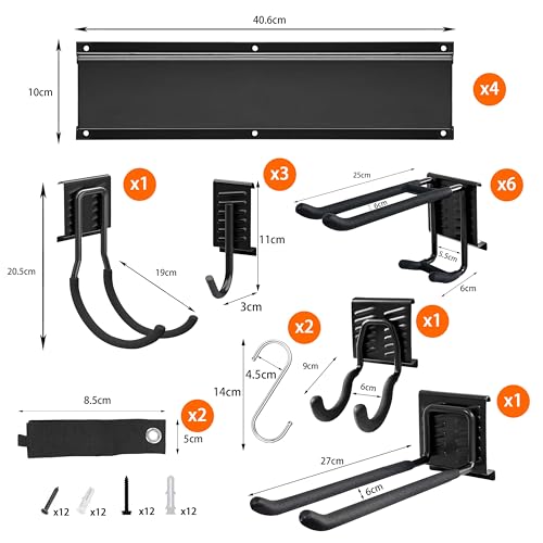 Mimoke Wandhalterung für Garage und Garten – 4 Schienen, 12 vielseitige Haken, Gesamtlänge 162 cm, robust und ideal für Gartengeräte