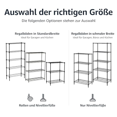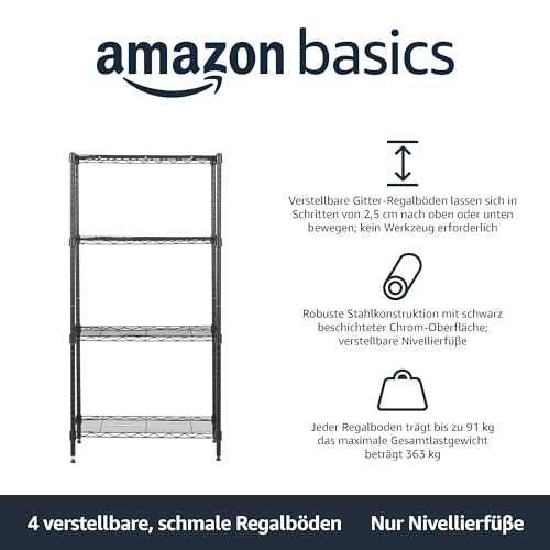 Amazon Basics Schmaler Aufbewahrungsschrank mit 4 Regalböden, höhenverstellbaren Einlegeböden und Nivellierfüßen, maximales Gewicht 363 kg, Schwarz, 34 cm x 58.9 cm x 121.9 cm (T x B x H)